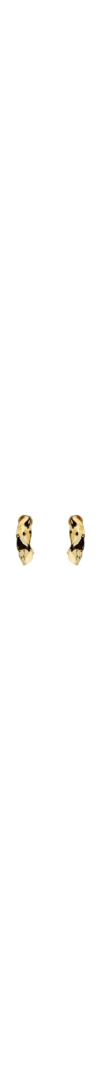 O brinco dourado é produzido em metal com banho de ouro 18K. A peça possui tamanho médio, formato orgânico alongado, acabamento polido e fechamento posterior por tarraxa.