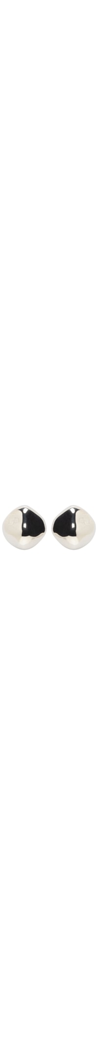 O brinco prateado é produzido em metal. A peça possui tamanho médio, formato assimétrico, acabamento polido e fechamento posterior por tarraxa.