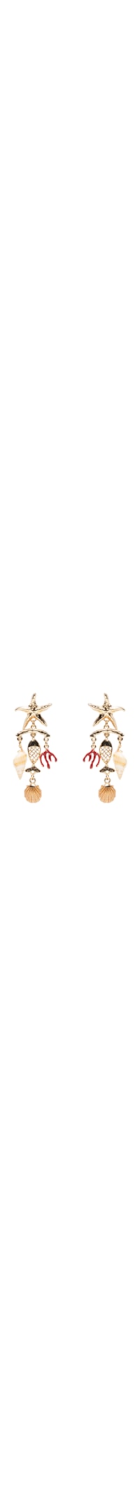 O brinco dourado é confeccionado em metal. A peça possui tamanho grande, com formato figurativo de estrela metalizado. Conta com aviamentos pendurados em formato figurativo em metal. Possui fechamento posterior por tarracha, garantindo praticidade e segurança no uso.