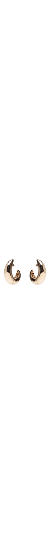 O brinco dourado é produzido em metal com banho de ouro 18k. A peça de modelo argola possui tamanho médio, formato J, parte interna vazada com tela metálica, acabamento polido e fechamento posterior por tarraxa.