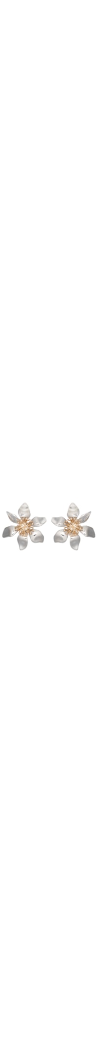 O brinco prata é produzido em metal com pintura automotiva antialérgica. A peça possui tamanho médio, formato figurativo de flor, detalhes finos na parte central com formato orgânico e fechamento posterior por tarraxa.