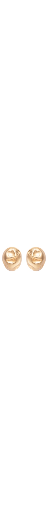 O brinco dourado é produzido em metal. A peça possui tamanho médio, formato orgânico, efeito amassado, logo da marca timbrado na parte interna e fechamento posterior por tarraxa.