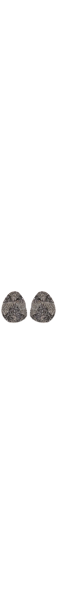 O brinco preto é produzido em metal com superfície cravejada em strass. A peça possui tamanho grande, formato orgânico, e fechamento posterior por tarraxa.
