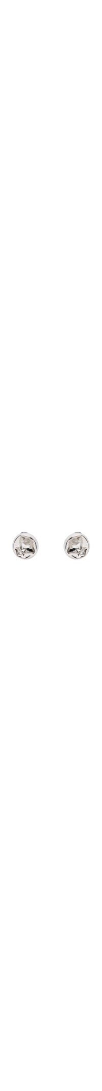 O brinco prateado é produzido em metal. A peça possui tamanho pequeno, formato arredondado com acabamento martelado e fechamento posterior por tarraxa.