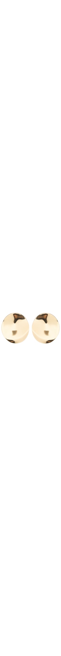 O brinco dourado é produzido em metal. A peça de tamanho redondo possui formato redondo, superfície irregular, acabamento polido e fechamento posterior por tarraxa.