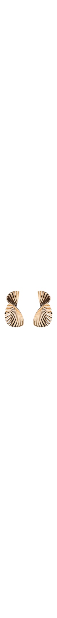 O brinco dourado é produzido em metal. A peça possui tamanho médio, formato orgânico, acabamento texturizado e fechamento posterior por tarraxa.