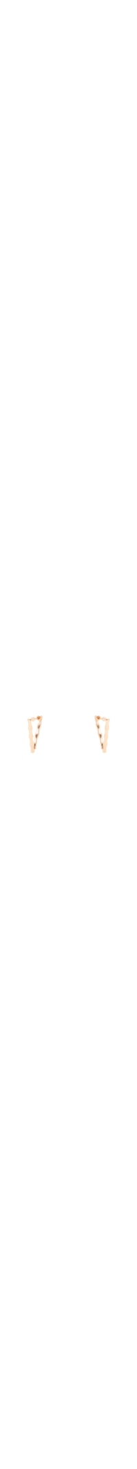 O brinco dourado é produzido em metal. A peça possui formato triangular, espessura fina, tamanho médio e fechamento posterior por encaixe.
