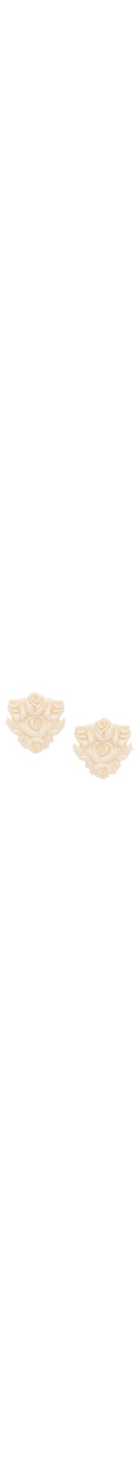 O brinco bege é produzido em resina com superfície fosca. A peça possui comprimento alongado, superfície texturizada com formato figurativo de flor, base metálica e fechamento posterior por tarraxa.
