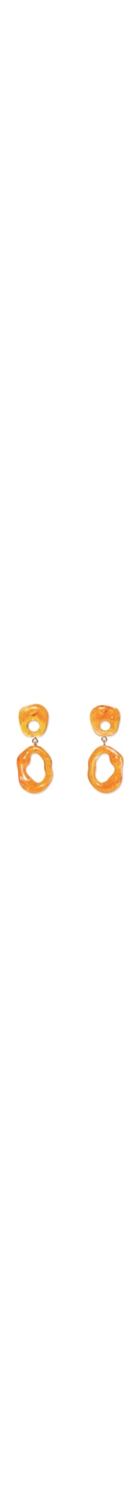 O brinco laranja é produzido em resina com efeito marmorizado. A peça possui tamanho grande, formato assimétrico, base com detalhe vazado, pingente fixo unido por mini elo metalizado, comprimento alongado, acabamento glossy e fechamento posterior por tarraxa.