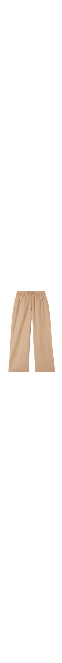 Calça em linho e algodão com cordão ajustável na cintura. Corte pantalona. Disponível em várias cores, todas combináveis com a coleção de praia.