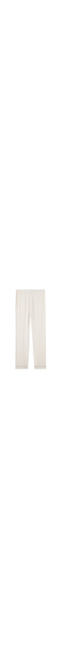 Calça comprida em micromodal. A peça é enriquecida por perfis de cetim em cor contrastante.