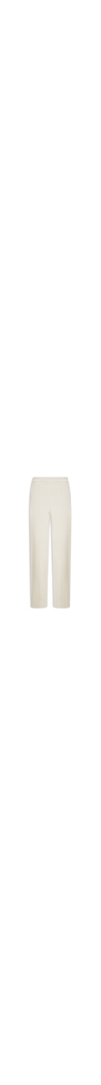 A calça bege é confeccionada em tecido leve sem elasticidade. A peça solta ao corpo possui cintura alta, bolsos frontais de modelo faca, nervuras frontais, pences posteriores, comprimento longo e fechamento lateral por zíper invisível.