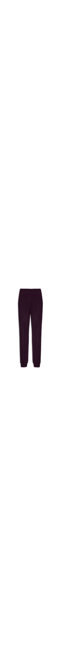 a calça Roxa é Confeccionada Em malha De Média Elasticidade. A Peça Solta Ao Corpo, Possui Cintura Alta, Cós Com Elástico Embutido, Recortes Frontais, Leve Franzido Posterior, Tag Metalizada Da Marca Aplicada Na Parte Posterior Do Cós, Barra Afunilada E Comprimento Longo.