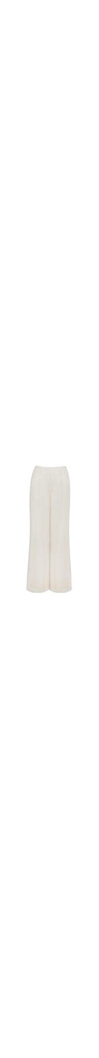 A calça branca é confeccionada em linho misto sem elasticidade. A peça solta ao corpo possui cintura alta, bolsos frontais modelo faca, pregas na parte frontal, comprimento longo e fechamento lateral por zíper.