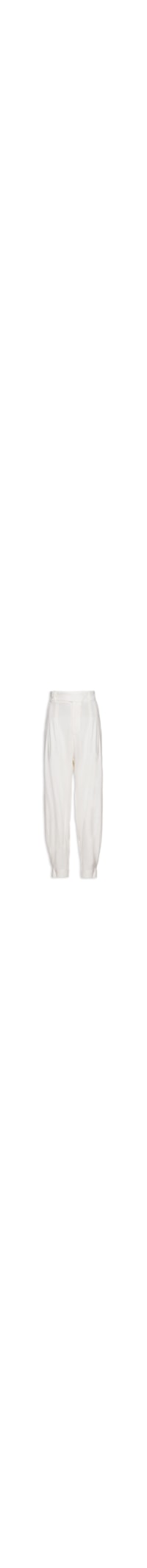 A calça off white é confeccionada em tecido leve com toque de linho e baixa elasticidade. A peça solta ao corpo possui cintura alta, cós com passantes e elástico embutido na parte posterior, pregas frontais, bolsos frontais embutidos, barras com detalhe de pregas, comprimento longo e fechamento frontal por zíper e botão.