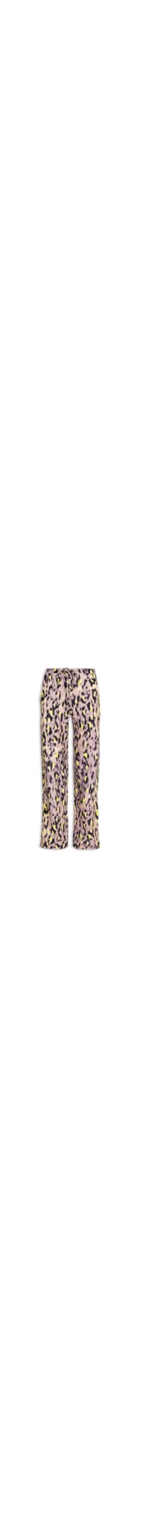 A calça animal print é confeccionada em tecido leve sem elasticidade. A peça solta ao corpo, possui cintura alta, cós com cordão embutido para amarração frontal, bolsos faca frontais, comprimento longo e fechamento frontal por zíper e botão interno.