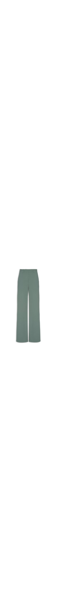 A calça verde é confeccionada em crepe sem elasticidade. A peça solta ao corpo, de modelo flare*, possui cintura alta, cós com passantes aplicados, bolsos frontais de modelo faca, bolsos posteriores, barra alongada, comprimento longo e fechamento frontal por zíper e colchetes.