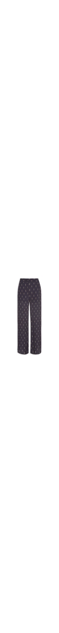 A calça preta é confeccionada em tecido leve sem elasticidade. A peça de modelo flare* possui cintura alta, bolsos frontais de modelo faca, estampa abstrata em na cor bege, barra arredondada, comprimento longo, forro curto e fechamento frontal por zíper e botão forrado.