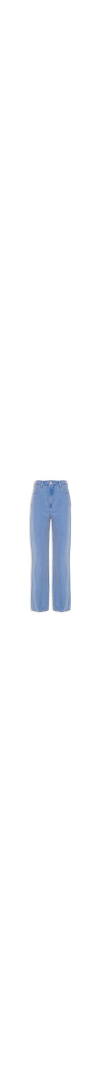 A calça azul é confeccionada em sarja com lavagem jeans sem elasticidade. A calça solta ao corpo possui cintura alta, cós com passantes e tag da marca aplicada na parte posterior, five pockets* com tag da marca e efeito destroyed**, recorte pala posterior, efeito estonado, comprimento longo e fechamento frontal em zíper e botão.