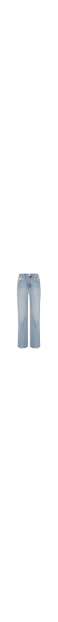 A calça azul é confeccionada em sarja com lavagem em jeans com baixa elasticidade. A peça solta ao corpo possui cintura alta, cós com passantes e tag da marca bordada na parte posterior, recorte posterior, five pockets* com puído, logo da marca aplicado em metal no bolso posterior, efeito estonado, comprimento longo e fechamento frontal por botão e zíper.