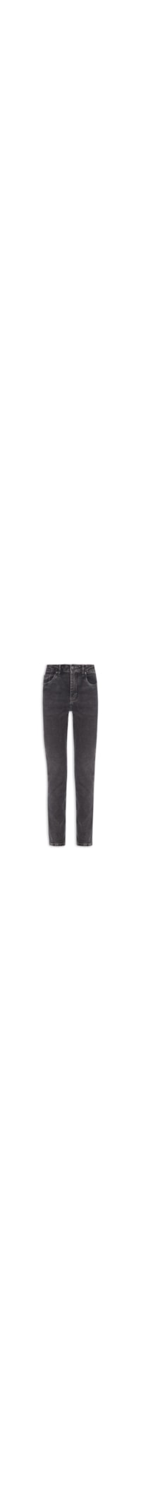 A calça preta é confeccionada em sarja com lavagem jeans e baixa elasticidade. A peça de modelo skinny* possui cintura alta, cós com passantes aplicados, five pockets**, recortes na parte posterior, tag da marca aplicada na parte posterior, efeito estonado, comprimento longo e fechamento superior por botão e zíper.