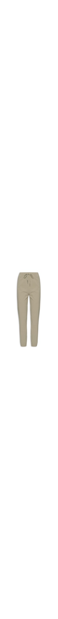 A calça bege é confeccionada em tecido leve sem elasticidade. A peça solta ao corpo de modelo jogger* possui cintura alta, cós com elástico e tira alongada embutida para ajuste e amarração frontal, bolsos frontais de modelo faca e comprimento longo.