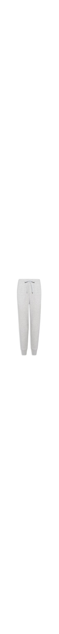 A calça cinza é confeccionada em moletom flanelado com média elasticidade. A peça de modelo jogger* solta ao corpo possui cintura alta, cós com cordão embutido para ajuste, bolsos frontais embutidos, logo da marca bordado na cor branco parte frontal e comprimento cropped**.