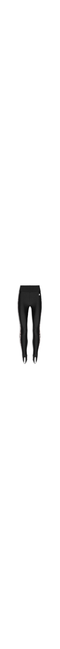 A calça preta é confeccionada em malha cirrê com média elasticidade. A peça de modelo fuseau* possui cintura alta, cós amplo com elástico embutido, logo da marca aplicado na parte frontal em material refletivo, recortes laterais em cor contrastante e comprimento longo.
