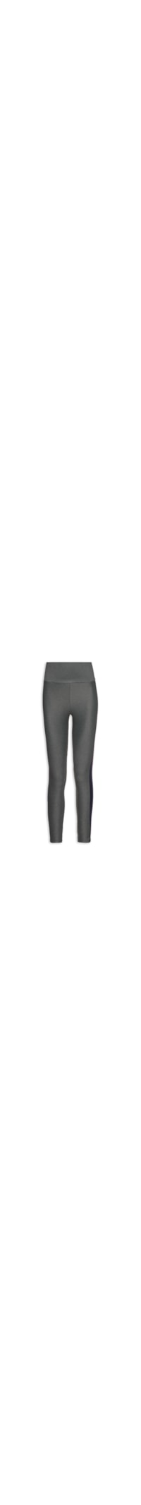 A calça cinza é confeccionada em malha de poliamida com média elasticidade. A peça justa ao corpo de modelo legging* possui cintura alta, cós amplo com detalhe do logo da marca emborrachado em cor contrastante aplicado na parte posterior, recortes laterais em tons contrastantes e comprimento longo.