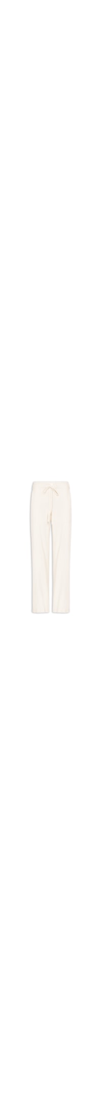 A calça off white é confeccionada em tecido leve com toque de linho e sem elasticidade. A peça solta ao corpo possui cós com passantes e elástico embutido na parte posterior, bolsos frontais modelo faca, cintura alta, passantes com tira alongada para amarração aplicados na parte frontal, forro, comprimento longo e fechamento frontal por botão e zíper.