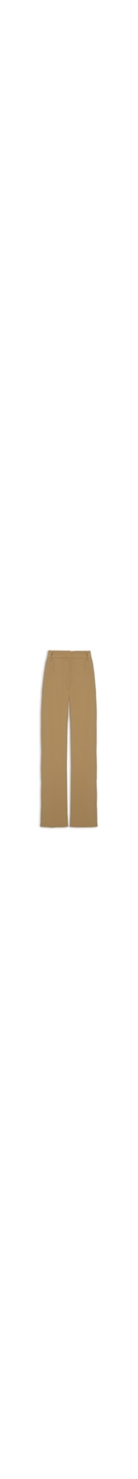 a Calça Bege é Confeccionada Em Tecido Leve De Baixa Elasticidade. A Peça Solta Ao Corpo Possui Cintura Alta, Cós Com Passantes Aplicados, Bolsos Frontais De Modelo Faca, Bolsos Posteriores Decorativos, Pregas Frontais, Pences Posteriores, Comprimento Longo E Fechamento Frontal Em Zíper E Colchete.