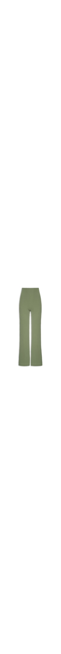 A calça verde é confeccionada em malha de poliamida com superfície texturizada e média elasticidade. A peça solta ao corpo possui modelo pantalona, cintura alta, cós com elástico embutido, textura de nervuras e barra estendida.