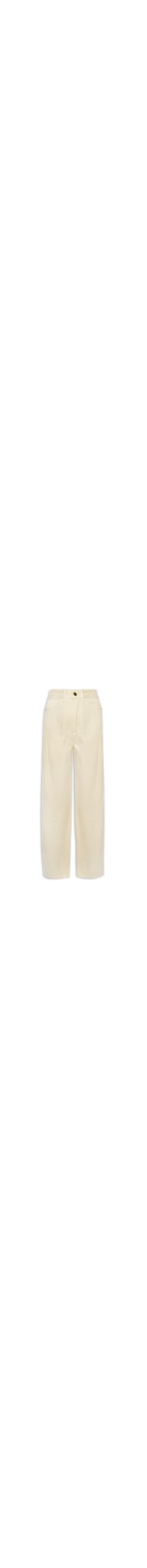 A calça bege é confeccionada em sarja sem elasticidade. A peça de modelo regular fit solta ao corpo possui cintura alta, cós com passantes aplicados, five pockets* com ilhós metálico da marca aplicado na parte posterior, recorte frontal, pences na altura dos joelhos, comprimento cropped** e fechamento frontal em zíper e botão.