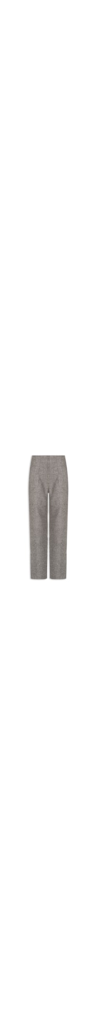 A calça cinza é confeccionado por tecido encorpado sem elasticidade. A peça solta ao corpo possui cintura alta, bolsos frontais embutidos decorativos, recortes frontais e posteriores, modelagem reta e fechamento frontal por botões internos e zíper.