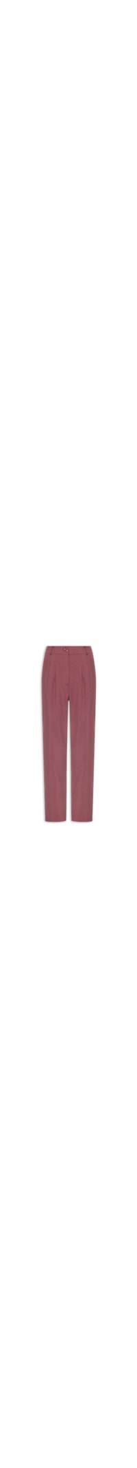 A calça vermelha é confeccionada em tecido leve com baixa elasticidade. A peça solta ao corpo possui cintura alta, cós com passantes aplicados, bolsos frontais modelo faca, pregas na parte frontal, comprimento longo e fechamento frontal por botão e zíper.