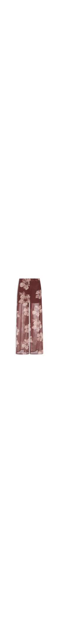A calça marrom é confeccionada em tule com alta elasticidade. A peça justa ao corpo, cintura alta, possui cós com elástico embutido, estampa floral com cores contrastantes, transparência e comprimento longo. Acompanha forro para uso opcional em short confeccionado em malha justa com alta elasticidade e cós com elástico embutido.