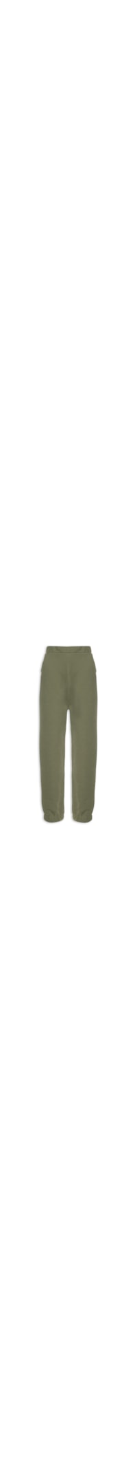 A calça verde é confeccionada em moletom. A peça possui cintura alta, cós elástico, bolsos frontais e posteriores, barra com elástico embutido, shape solto, caimento reto e acabamento pespontado.