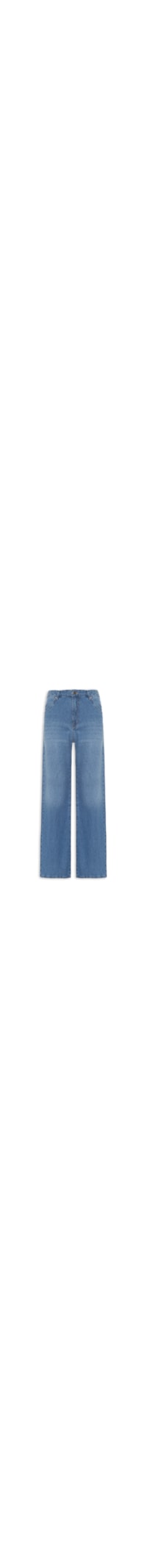 A calça azul é confeccionada em sarja com lavagem em jeans sem elasticidade. A peça solta ao corpo de modelo wide leg* possui cintura alta, cós com passantes aplicados, bolsos frontais e posteriores, recorte posterior, tag da marca aplicada ao cós posterior, comprimento longo e fechamento frontal por botão e zíper.