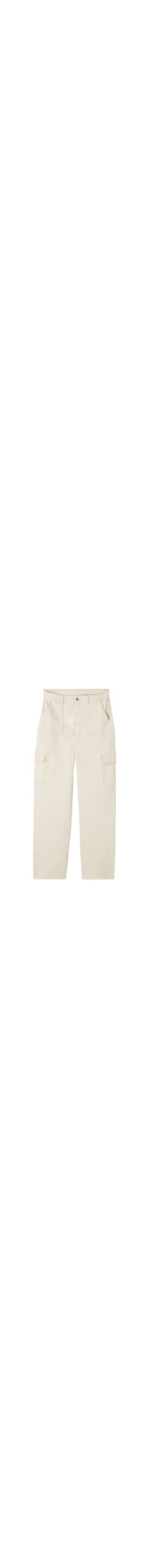 Selecione o tamanhoCalça jeans modelo cargo de corte largo, com fechamento de zíper e botão. Bolsos aplicados nas laterais e bolsos funcionais na parte da frente e de trás. Corte a laser na barra com efeito de franja. O tecido macio e elástico garante um excelente caimento.