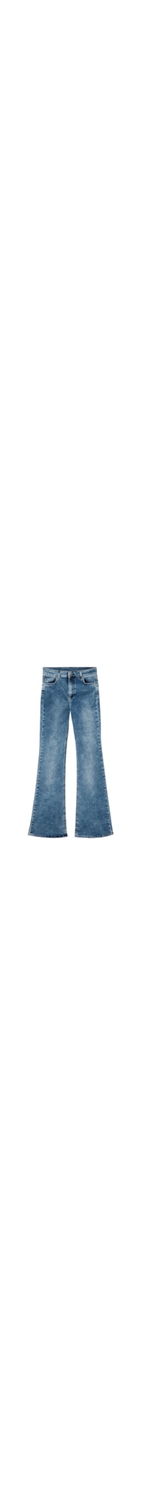 Calça Jeans Flare, o modelo possui fechamento por zíper e botão, bolsos na parte frontal e traseira e corte regular.