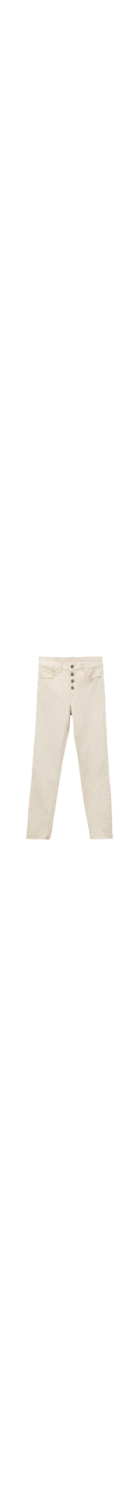 Selecione o tamanhoCalça jeans feminina super skinny com cinco bolsos e botões, em tecido ultraelástico muito confortável. Ligeiramente desgastados nos joelhos. Corte a laser com franjas na bainha.