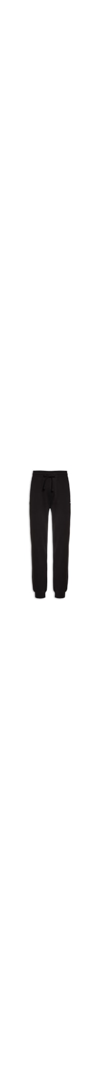 A calça preta é confeccionada em moletom. A peça de modelo jogger* possui cintura média, cós elástico com cordão embutido para ajustes, bolsos frontais embutidos, nome da marca com superfíci emborrachada e cor contrastante aplicado na parte frontal abaixo do bolso esquerdo, comprimento longo e shape solto.