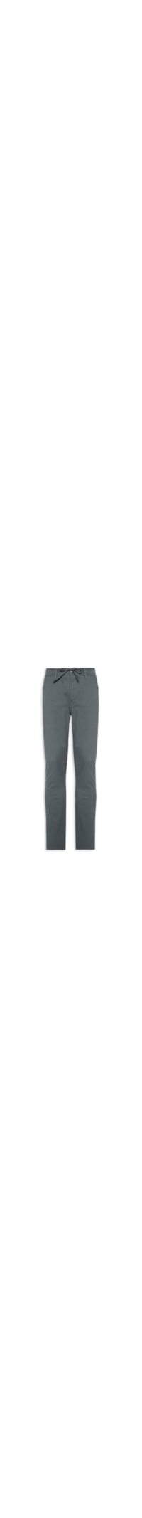 A calça cinza é confeccionada em sarja com baixa elasticidade. A peça de modelo slim solta ao corpo possui cintura média, cós com passantes, pences posteriores, bolsos posteriores embutidos, bolsos frontais modelo faca, comprimento longo e fechamento frontal por botão e zíper.