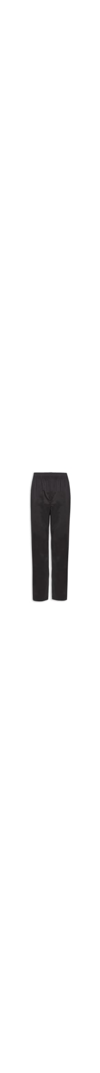 A calça preta é confeccionada em tactel sem elasticidade. A peça solta ao corpo possui cintura média, cós com elástico e cordão embutido para ajuste interno, recorte posterior, bolso posterior embutido com fechamento por zíper, bolsos frontais embutidos e comprimento longo.