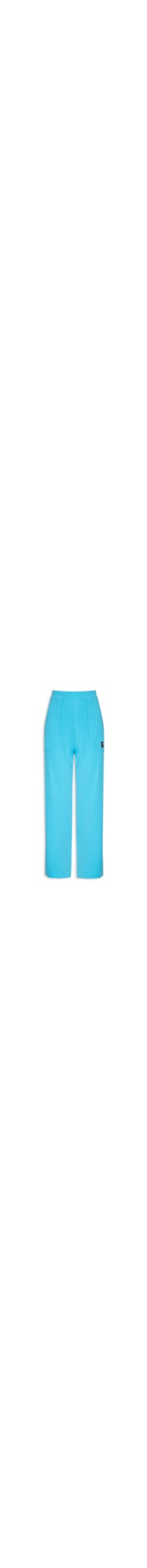 A calça azul é confeccionada em moletom. A peça de modelo wide leg* possui cintura alta, cós elástico, bolsos frontais, tag da marca aplicada na parte frontal, shape solto, caimento reto e acabamento em corte à fio.