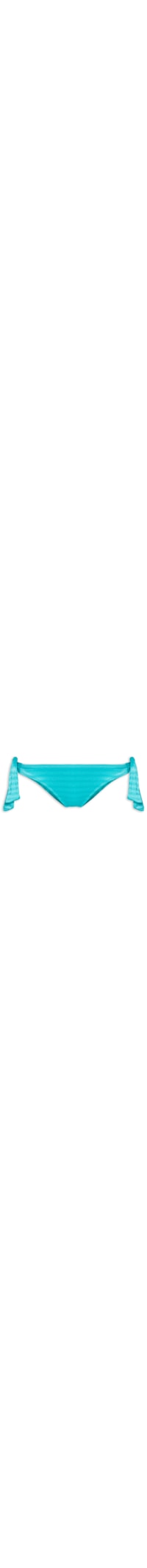 A calcinha azul é confeccionada em malha cirrê com superfície texturizada. A peça de modelo tanga possui laterais médias com tiras para amarração, forro e acabamento pespontado.