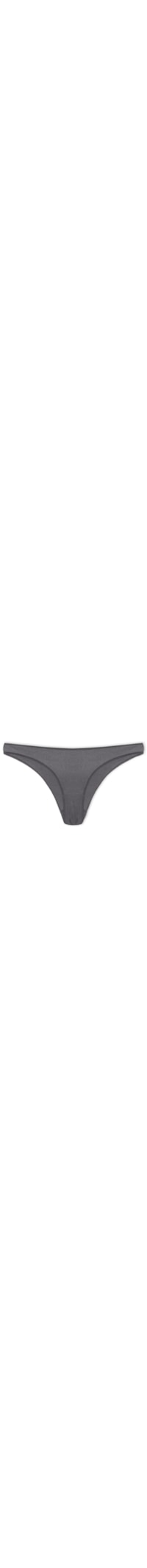 A calcinha cinza é confeccionada em malha microfibra acetinada com alta elasticidade. A peça de modelo biquíni possui laterais média, tag da marca bordada na parte posterior e forro.