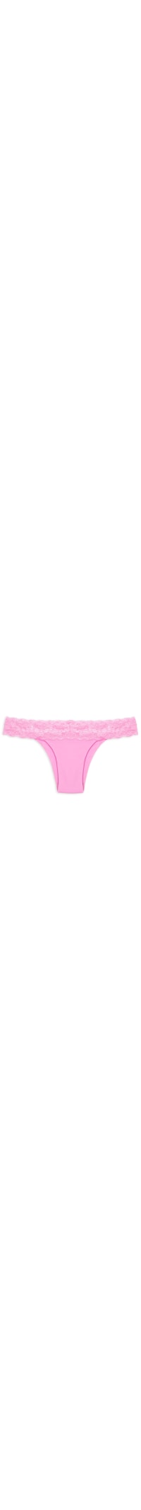 A calcinha rosa é confeccionada em malha microfibra com alta elasticidade. A peça de modelo biquini possui cós em renda, laterais médias, tag da marca bordada na parte posterior e forro.