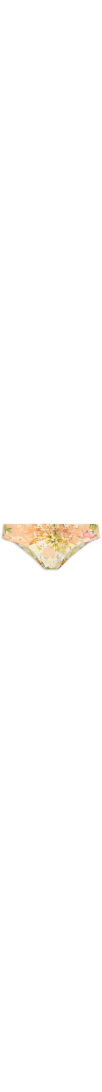 A calcinha bege é confeccionada em malha de poliamida. A peça de modelo tanga possui laterais largas, mix de estampas em cores contrastantes, forro e acabamento elástico.