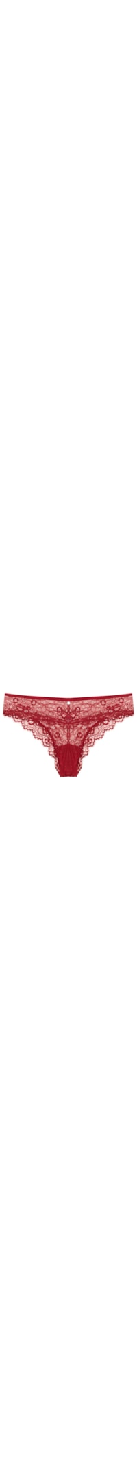 A calcinha vermelha é confeccionada em renda de poliamida com alta elasticidade. A peça de modelo biquíni possui cintura média, recorte posterior, tag da marca aplicada em metal na parte posterior, recortes frontais, transparência e forro.